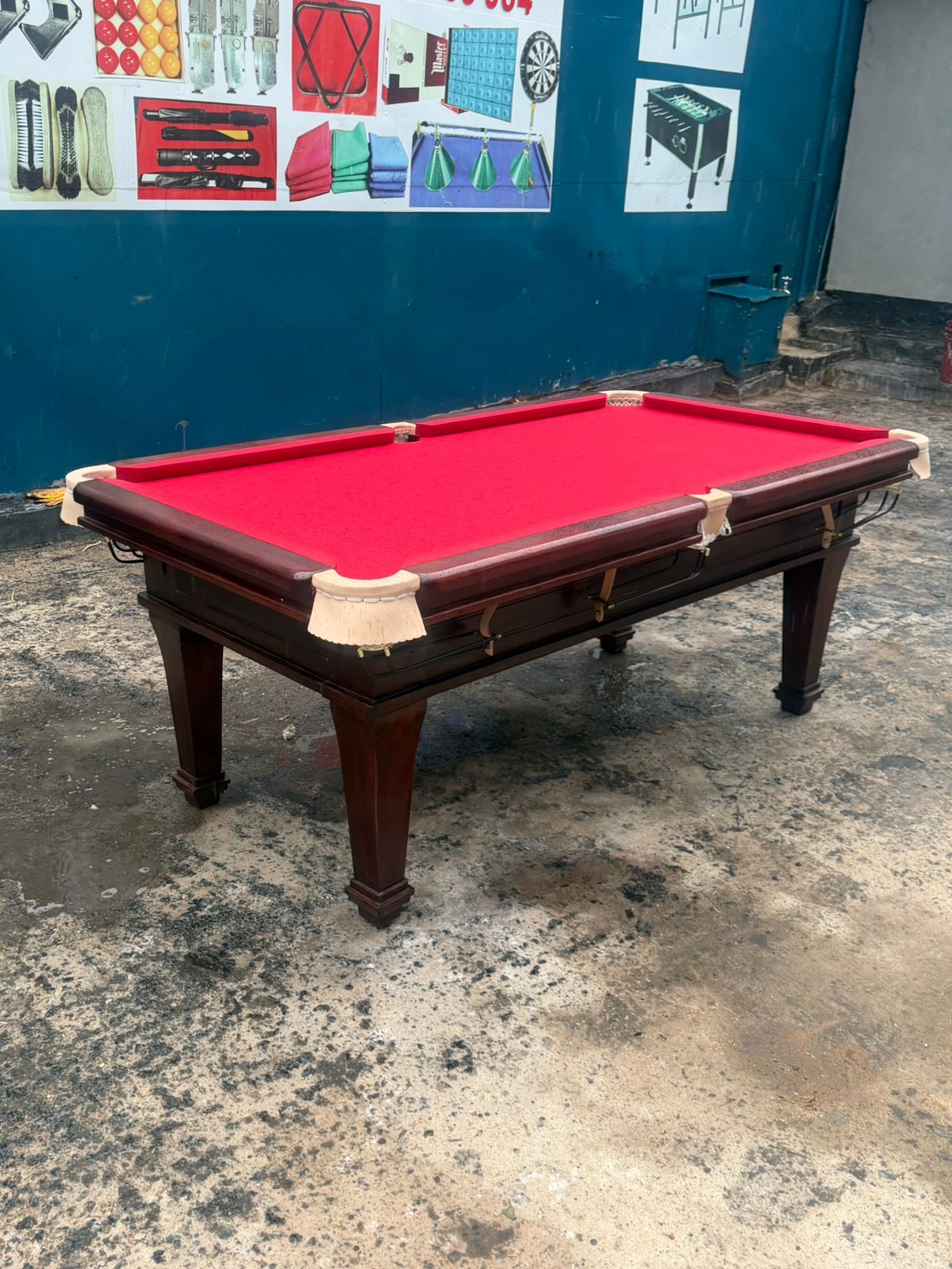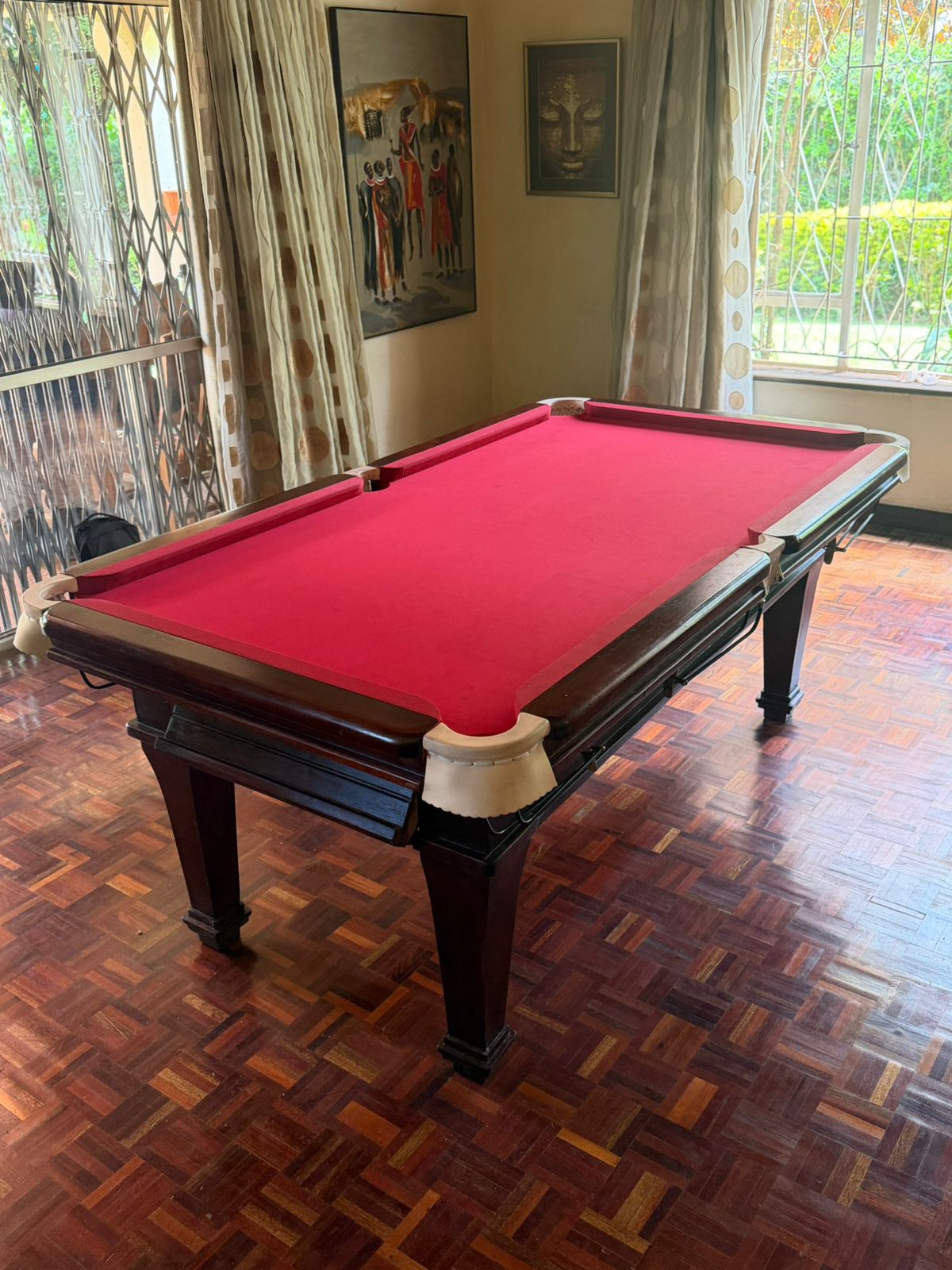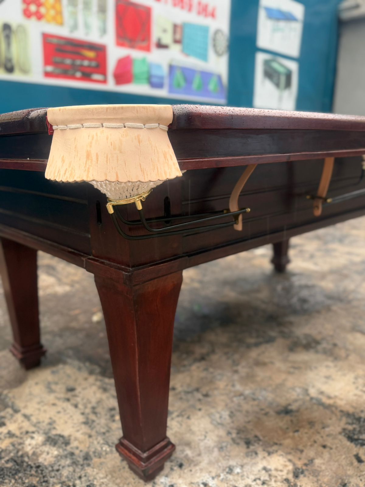 Domestic mahogany marble top Pooltable with pockets and nets