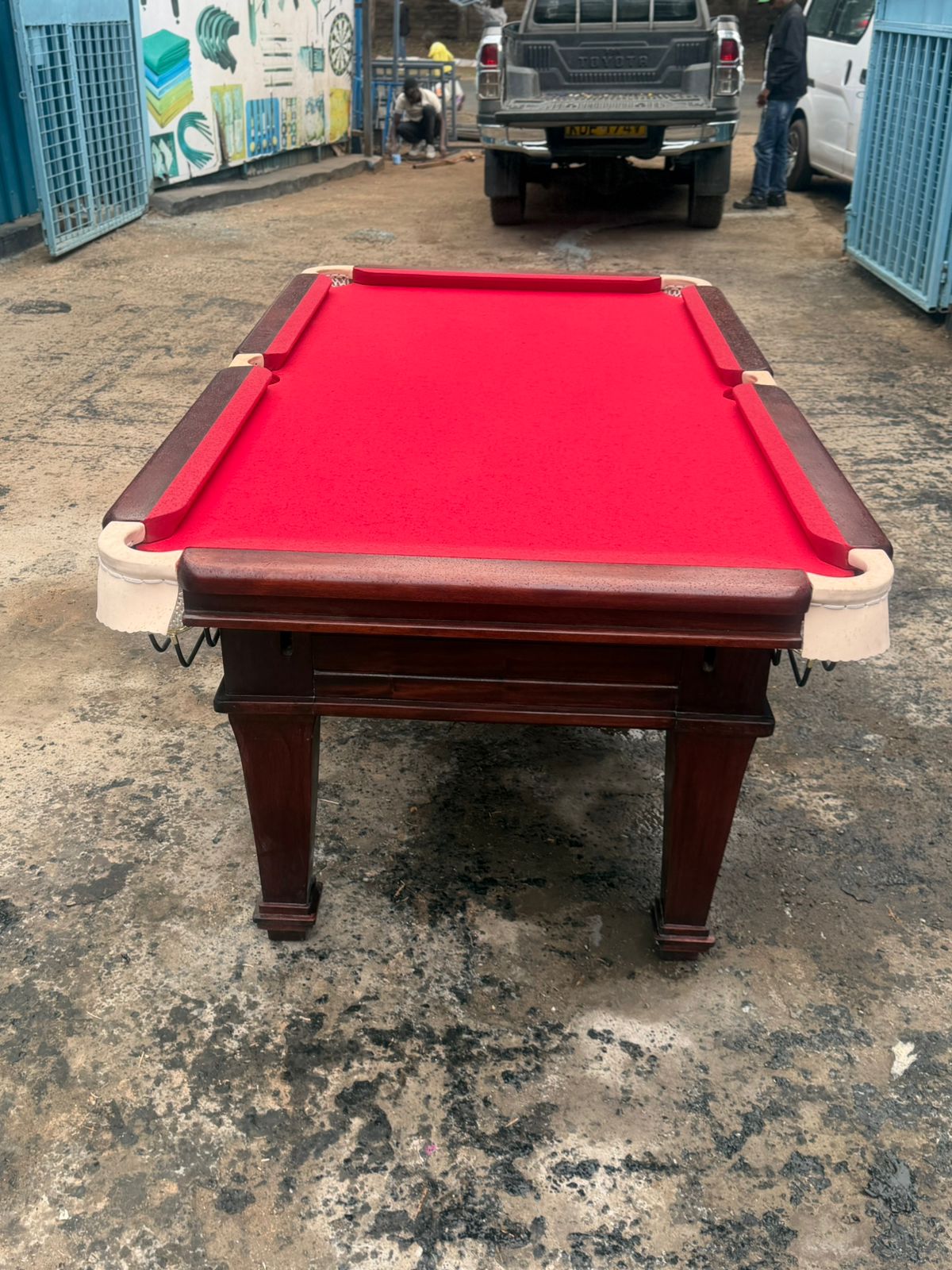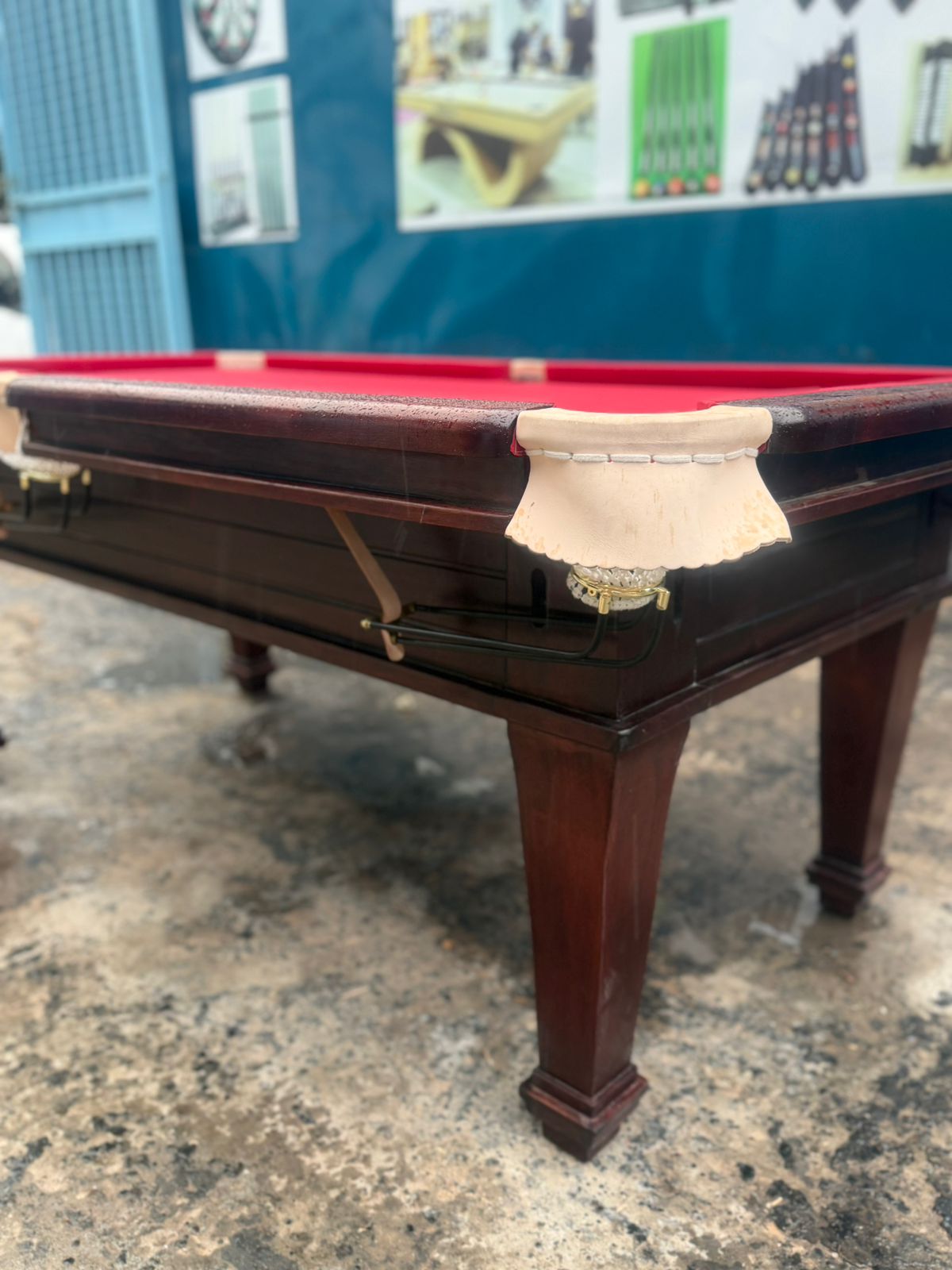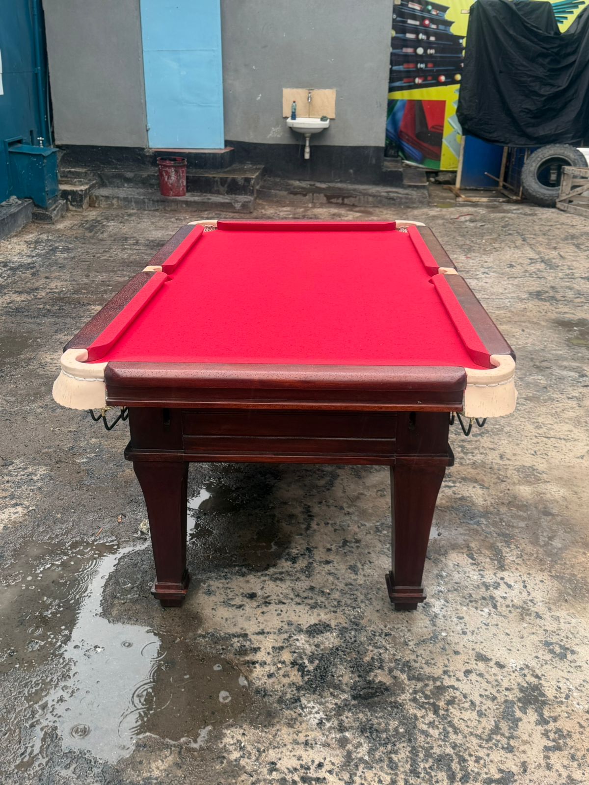Domestic mahogany marble top Pooltable with pockets and nets